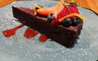 The Experience: New bar & great desserts! Get on down to experience the new bar in the lounge and choose one of their delectable desserts with a glass of wine. Try their flourless chocolate cake with candied orange peels and fresh fruit (featured here). Fans also rave about their Baklava Cheesecake (featured below). And enjoy their beautiful newly remodeled bar. You can always stop by the lounge, with the welcoming vibe of a neighborhood bar, for some small bites & your fav from the wine or cocktail list. They offer a selection of Greek, Italian and California wines, as well as craft cocktails, local and imported beers and sodas made right here in Alameda. Their menu is influenced by Greek and Italian traditions, offering lots of appetizers including pancetta wrapped prawns