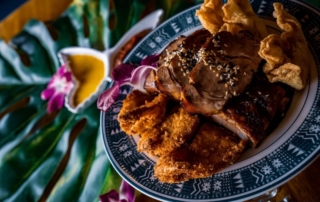 The Experience: Kick back on the water! At the end of your long day, head down to the Bay and the lounge at Trader Vic’s for drinks and a taste of the world! You will be transformed by the tiki madness and soothed by the views of the boats in the marina and beyond. Decades ahead of his time, Vic ‘The Trader’ Bergeron chose to offer Chinese dishes alongside the then-contemporary Continental cuisine, creating maybe the original fusion menu. Today, Trader Vic's continues the tradition and still uses the Chinese Wood-fired Ovens featuring dishes from the Mediterranean, the Middle East, Asia, and Japan. And, as we all know, Trader Vic’s claims to be home to the original Mai Tai. Here's what’s on the lounge menu: Tidbits & Pupus Cosmo Tidbits – Trader Vic’s original pupu platter.A sampling of crispy prawns, char siu pork, crab rangoon & BBQ ribs for two (featured here) BBQ Spare Ribs – Sugar cured & dipped in our signature BBQ glaze. Slow cooked to perfection