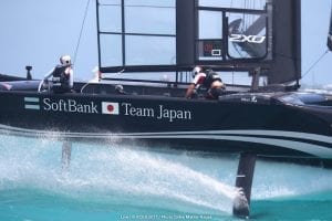 In what ended up being the final Semi-Final race today, June 9, Artemis and Team Japan hit the start with Japan slightly ahead of Artemis, up on their foils first and shooting straight ahead at 45 knots. They got the start they wanted. Both boats’ speeds were really good; they were only 16 meters apart. It was like a big drag race out there. At one point at the edge of the race course, Artemis tacked and Japan had to stay clear. Japan delayed their tack and almost collided with Artemis, who called for a penalty. None was levied. But this was not good for Japan, as Artemis took the lead before Gate 3 and held onto it past Gate 6 to the FINISH. It was over for Japan and helmsman Dean Barker. But for helmsman Outteridge – the team was stoked. “That was a tough race and to come back the boys really had to dig in. We’re really happy to take it to the next round and we’re going to be ready to go tomorrow.” The Swedes go onto the Finals against the Kiwis.