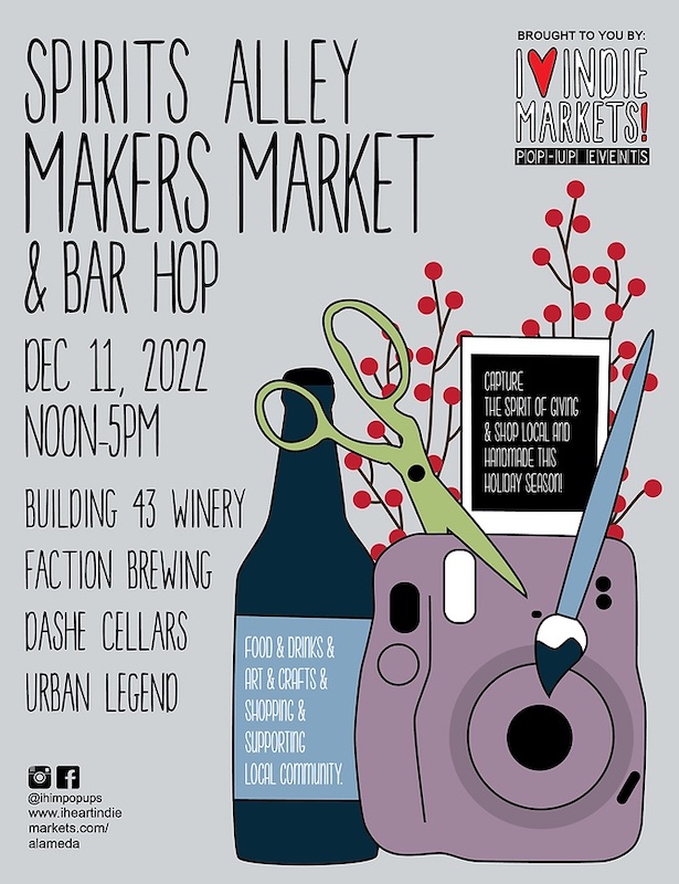Shop local Bay Area artists, makers and vintage curators as you sip. Then settle in with beer or wine and some tasty bites. You’ll find jewelry, knit goods, home decor, metalworking, prints, soap, paintings, candles, and more unique gifts.