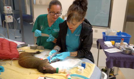 After the passing of their last four rescue tigers, Oakland Zoo now has a tiger hybrid who arrived in poor condition and with a badly infected tooth that has caused facial deformity, and bowed legs, along with another tiger from a separate enclosure who was quite lean upon arrival. The animal care team named them Lola & Mia.