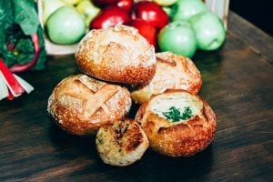 Hard Rock’s Salmon-Bacon Chowder served up in fresh local French bread loaves. Yum!